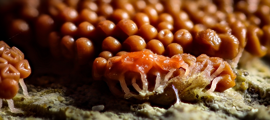 Einige Stationen des Lebens des Schleimpilzes trichia decipiens: Hier Sporocarpien im Übergang zur Fruktifikation.